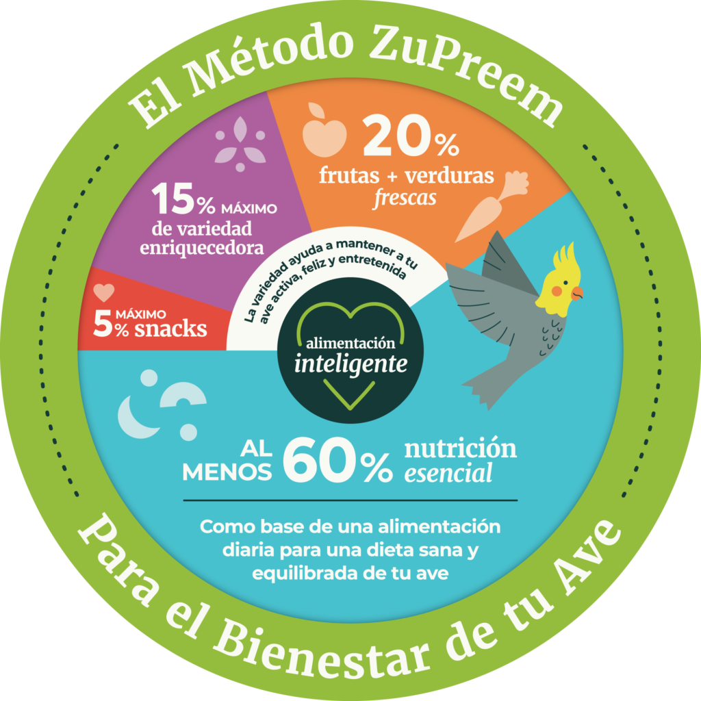Al equilibrar la alimentación de tu ave a lo largo de la semana podrás limitar el consumo excesivo de semillas e incorporar la nutrición saludable que ofrece ZuPreem. Es nutrición al 100% para una tranquilidad al 100%.